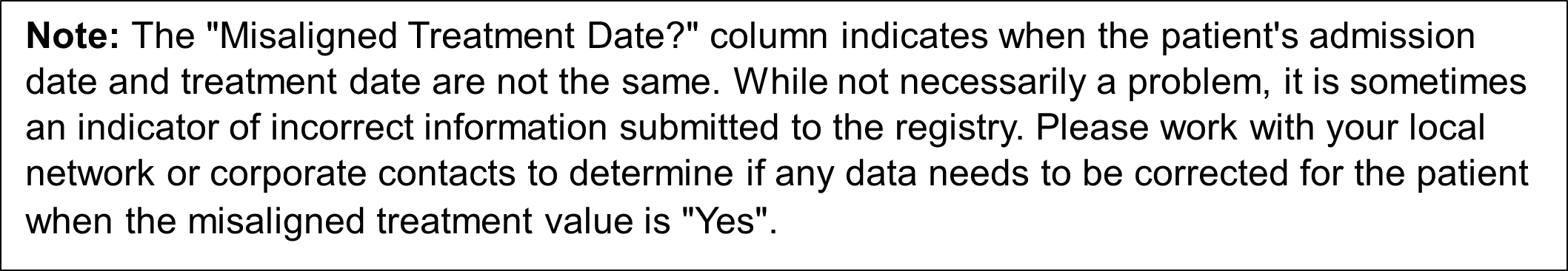 | A definition of the Misaligned Treatment Date column header can be found in Figure 7. |