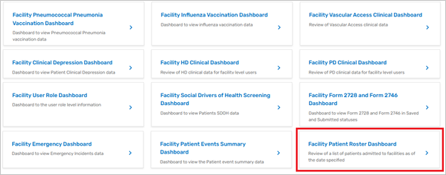 | Figure 9. Selecting Facility Patient Roster Dashboard