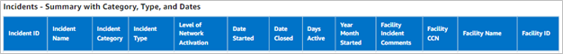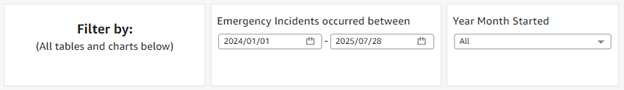 For all tables, users have the option to select one or all the following filters: Emergency Incidents occurred between, and Year Month Started (Figure 5).