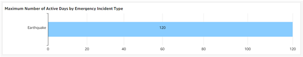 The first table in the dashboard, Maximum Number of Active Days by Emergency Incident Type, provides a breakdown of the number of days by emergency type (Figure 6).